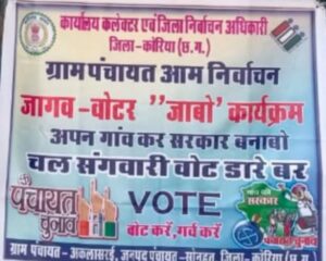 कोरिया जिले के सोनहत जनपद पंचायत में कमीशन का व्यापार बड़ी तेजी के साथ फल फूल रहा है। स्वछता किट के बाद अब फ्लेक्स घोटाला सामने आ रहा है आपको बता दें की सोनहत के  लगभग ग्राम पंचायतों के सचिव की मीटिंग सोनहत मुख्यालय में हुई जिसमें सभी 42 ग्राम के सरपंच सचिवों को 2 – 2 नग फ्लेक्सी ग्राम पंचायत आम निर्वाचन जागव वोटर जाबो कार्यक्रम का बनवाकर जनपद पंचायत सोनहत की ओर से बांटा गया और साथ में ही गुप्ता फ्लेक्स प्रिंटर का 1500 रुपये का बिल भी दिया गया 2×3 फिट की 2नग फ्लेक्सी जिसका बाजार भाव में कीमत महज 500 रुपये से अधिक नहीं आका जा सकता है।